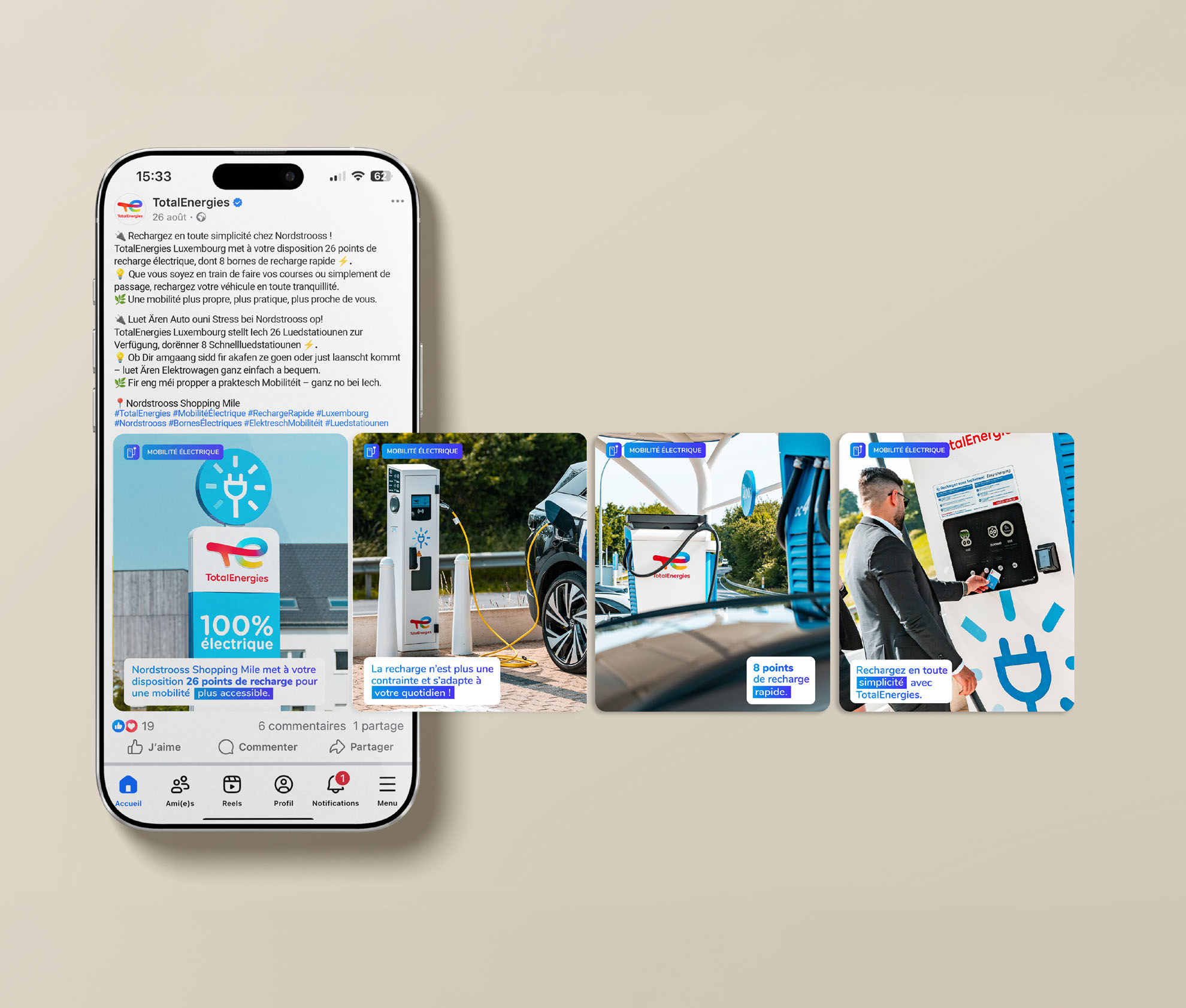 Que ce soit pour des campagnes publicitaires, des communications internes, des événements ou des supports marketing, notre équipe travaille en étroite collaboration avec l’équipe marketing de Total Energies Luxembourg dans le but de renforcer leur attractivité.